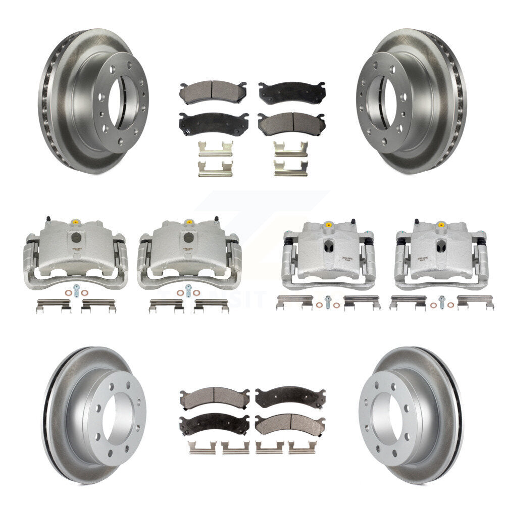 Front Rear Disc Brake Caliper Coated Rotors And Ceramic Pads Kit (10Pc) For Chevrolet Silverado 2500 HD GMC Sierra 3500 Classic Suburban Yukon XL Avalanche KCG-100935T