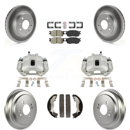 Front Rear Disc Brake Caliper Coated Rotors Drums Semi-Metallic Pads Kit (8Pc) For Hyundai Accent Kia Rio Rio5 KCG-101383N