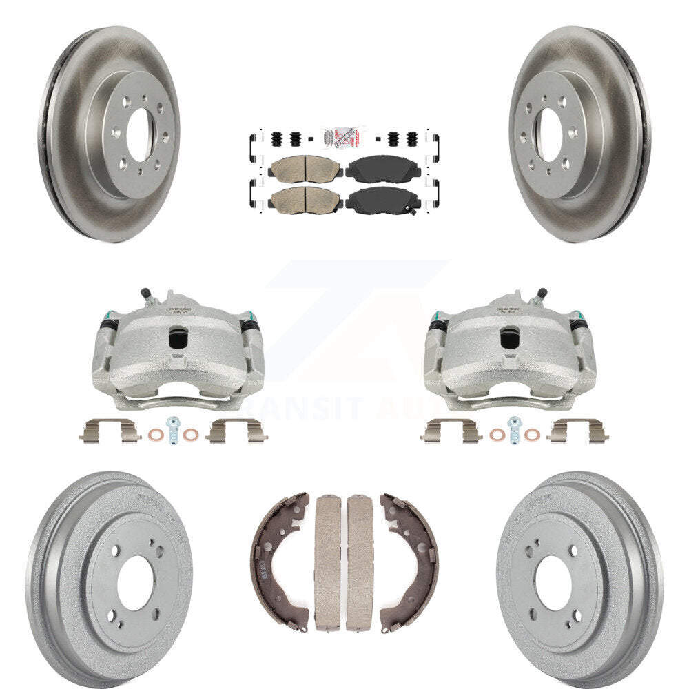 Front Rear Disc Brake Caliper Coated Rotors Drums Ceramic Pads Kit (8Pc) For Honda Insight KCG-101395N