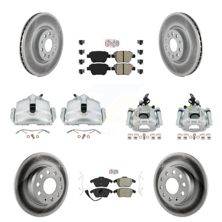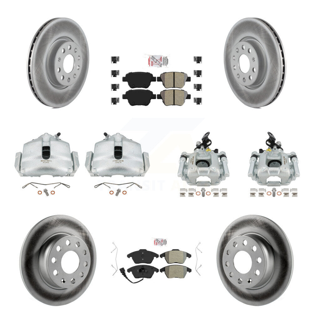 Front Rear Disc Brake Caliper Coated Rotors And Semi-Metallic Pads Kit (10Pc) For Volkswagen Beetle GTI KCG-101752N
