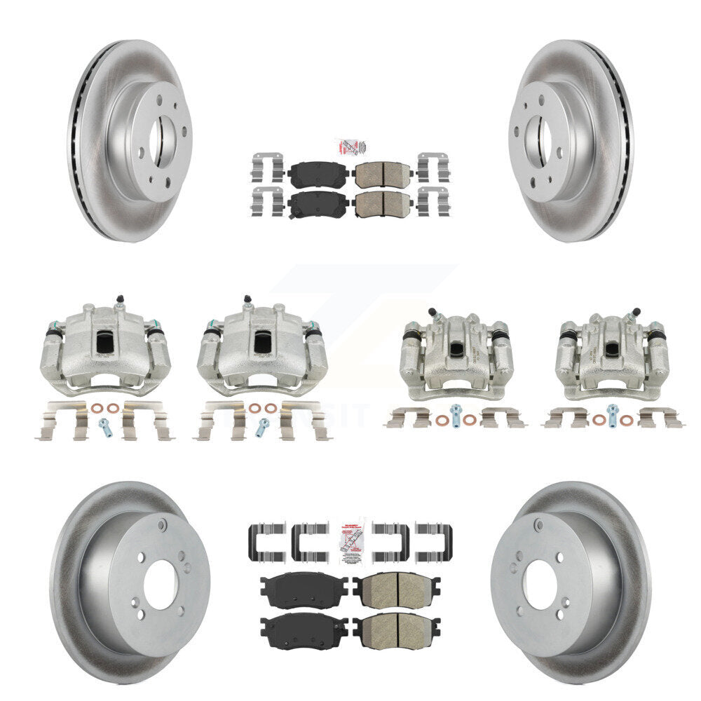 Front Rear Disc Brake Caliper Coated Rotors And PADSMATERIAL Pads Kit (10Pc) For 2006 Hyundai Accent Hatchback KCG-102756N
