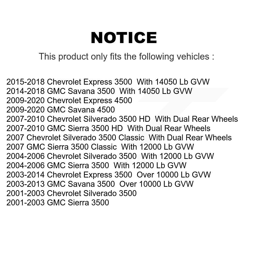 | 2010 | Chevrolet | Silverado 3500 HD | With Dual Rear Wheels | Front |