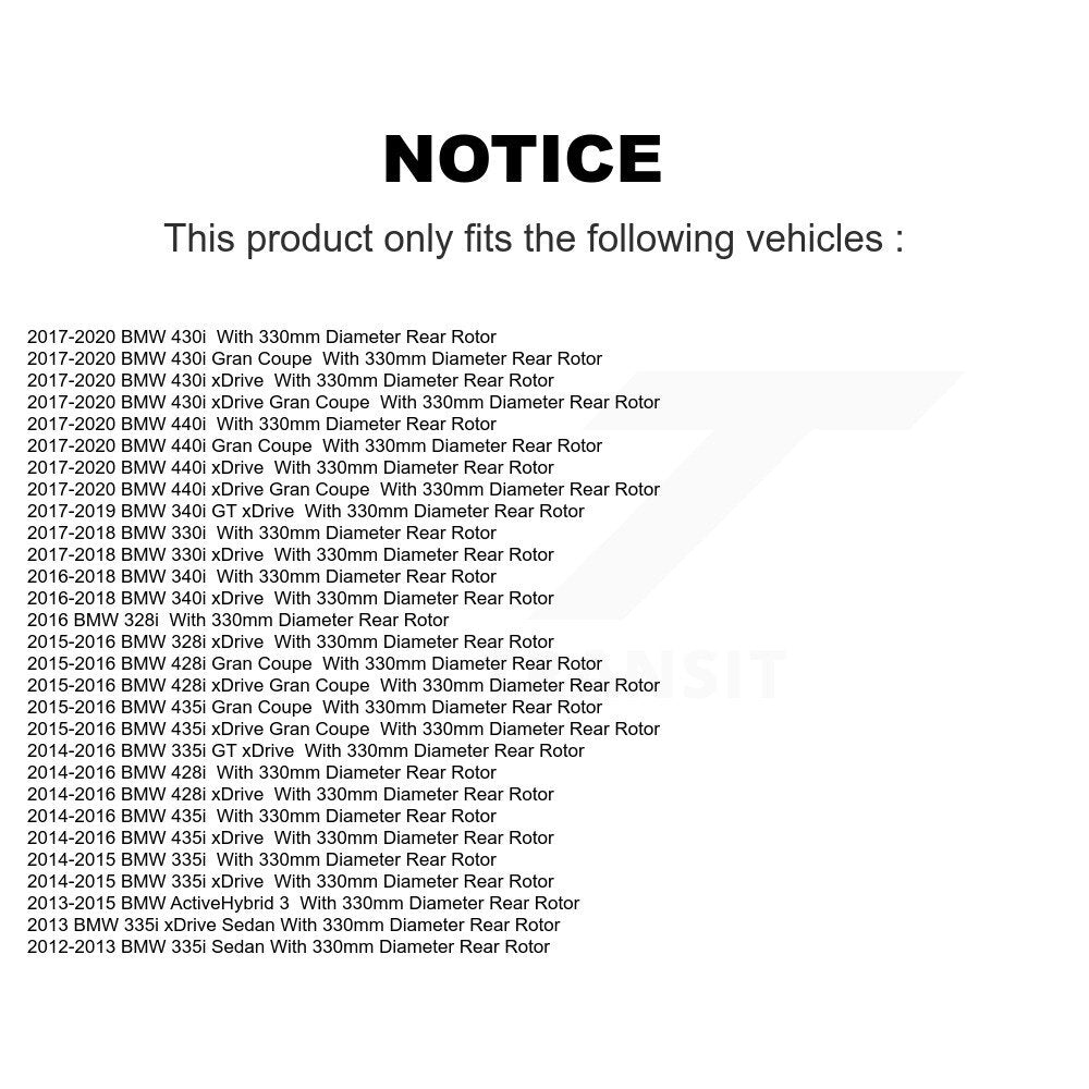 | 2017 | BMW | 440i | With 330mm Diameter Rear Rotor | Rear |