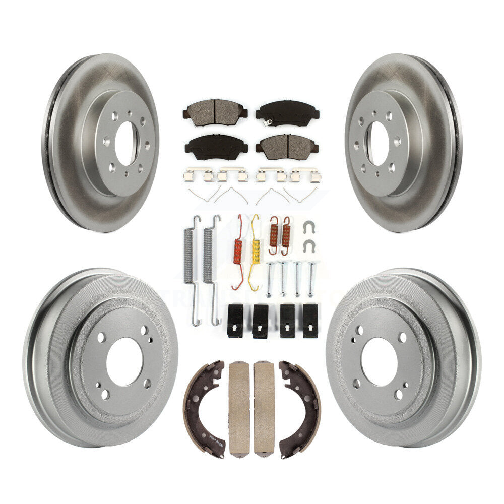 Front Rear Coated Disc Brake Rotors Semi-Metallic Pads And Drum Kit (7Pc) For 2007-2008 Honda Fit KGS-101526