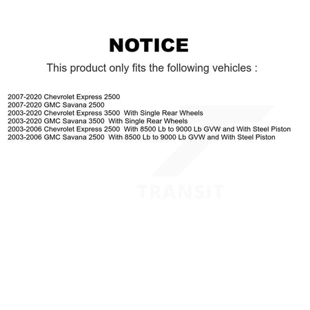 | 2003 | Chevrolet | Express 2500 | With 8500 Lb to 9000 Lb GVW and With Steel Piston | Rear Right |