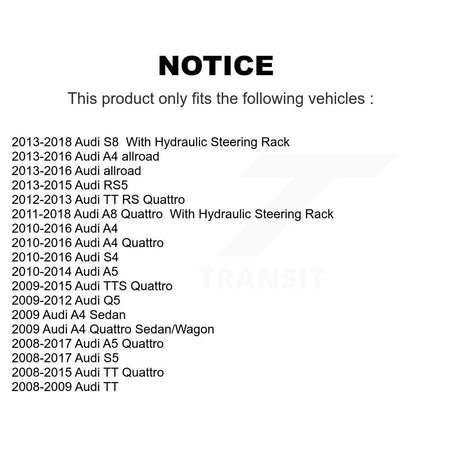 | 2018 | Audi | A8 Quattro | With Hydraulic Steering Rack | Front Inner |